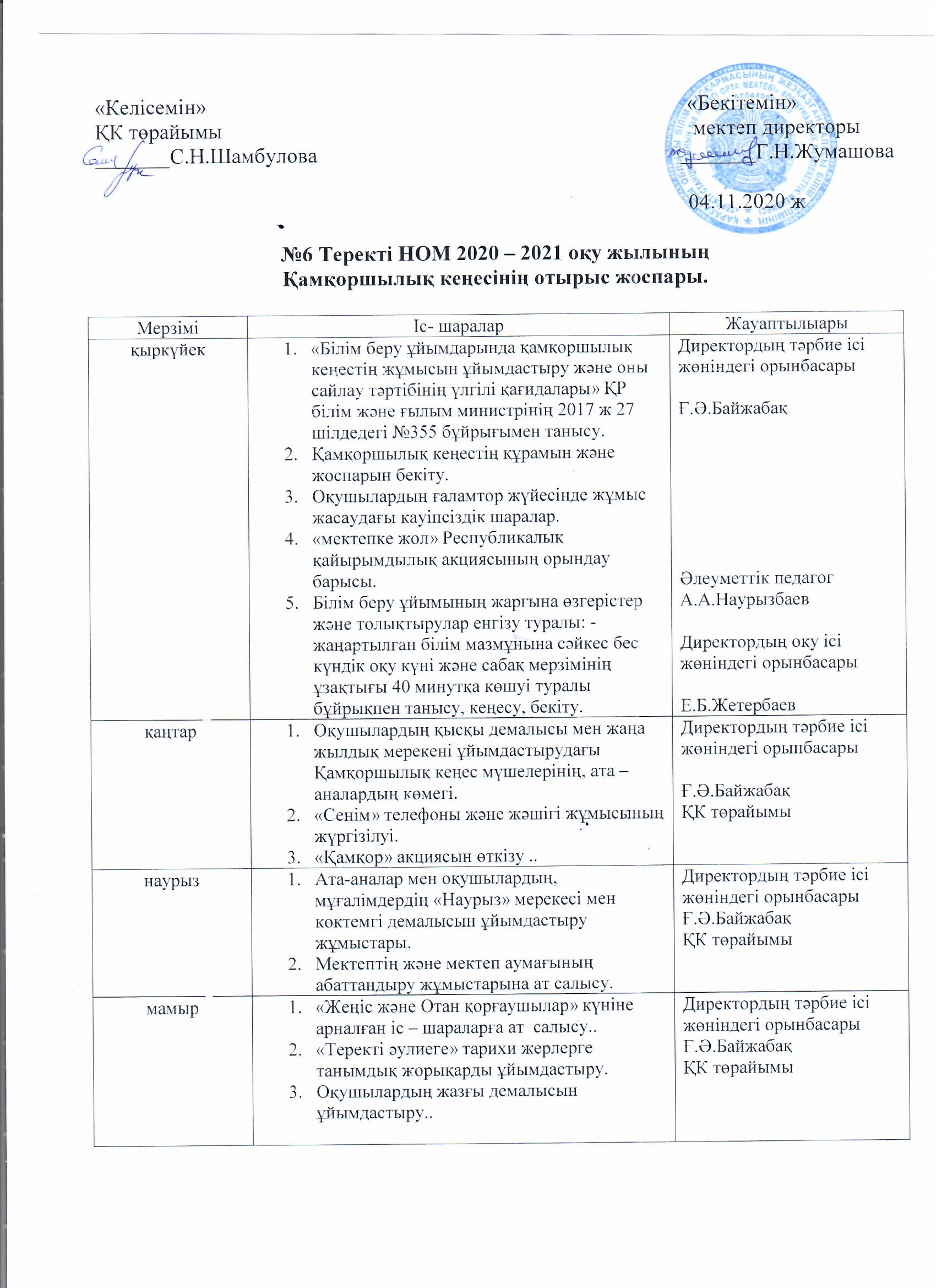 Қамқоршылық кеңестің 2020 - 2021 оқу жылының жоспары...